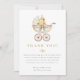 Express your gratitude with this elegant baby shower thank you card designed to coordinate with our vintage pram collection. Features an ivory watercolor carriage adorned with golden florals and a soft neutral bow, paired with classic serif typography and a delicate floral accent. The coordinating golden floral backer completes the timeless, heirloom-inspired look.