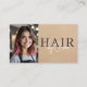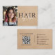 Neutral Beige Suede Hair Stylist Photo QR Code Business Card