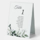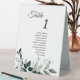 This Neutral Botanical wedding table tent sign with guests provides a simple, rustic plant palate to coordinate with any traditional wedding reception or event theme. The minimal greenery, with dark and grey shades of elegant green eucalyptus leaves and plant foliage, alongside the classy casual calligraphy, open up a minimalist nature vibe to a classic, formal marriage celebration.