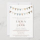 Celebrate your special day with this soft and stylish rustic wedding invitation, featuring hand-painted style bunting in muted pastel tones. The minimalist layout and natural colour scheme offer a charming, gender-neutral aesthetic perfect for outdoor, barn, or relaxed garden weddings. With elegant fonts and gentle detailing, this invitation suits modern couples seeking a warm, understated vibe.