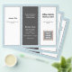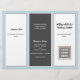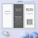 Triple fold business brochure template in dark grey, light blue and white. Customise six sections that include a business logo on the front, QR code and photo template inside. The centre panel has a place for a personal photo for the "about" section. Feel free to use the "edit" area to change and / or move fonts, or contact me for help.