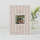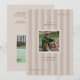 Graduation photo announcement card with a sporty, neutral coloured striped background, ideal for athletes.