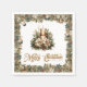 Neutral earthy tones green Christmas gold candle Napkin