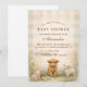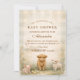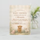 A charming countryside design featuring a fluffy calf, a sweet little lamb, and tiny yellow chicks nestled among soft meadow wildflowers. The warm parchment background and muted earth tones create a cosy, rustic atmosphere with a gentle storybook feel. Delicate greenery frames the layout while the farm animal illustration adds warmth and personality. Perfect for a neutral rural-themed celebration with classic farmhouse charm.
