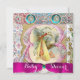 Elegant antique mediaeval parchment with colourful gem stones white pearls,pink bow and animals.Funny vintage style floral design with a baby and flying stork among the beautiful pink,gold,red roses, spring flowers and green leaves by Bulgan Lumini (c).