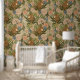 Neutral Jungle Cheetah and Flamingo Floral Wallpaper