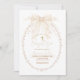 Soft ivory watercolor pearls form a delicate oval frame around your event details, topped with a graceful ribbon bow, subtle florals, and a classic gold cross.
