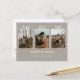 Announce your special day with this modern minimalist save the date postcard, thoughtfully designed as an elegant photo collage wedding announcement. Featuring three personal couple engagement photos framed in a soft beige, the card is highlighted by bold date typography and soft script calligraphy that elegantly states “Save the Date.” The clean reverse side displays your initials alongside a refined botanical accent save the date design, all set in a contemporary wedding announcement idea with a clean neutral colour palette style. Rustic inspired wedding stationery details and the easy to mail postcard format make this three photo wedding keepsake card both practical and memorable, perfectly capturing your joyful celebration with sophistication and ease.