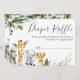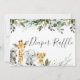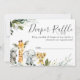 Sweet safari animals baby shower diaper raffle ticket or insert featuring four jungle animals and some foliage.