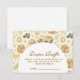 A sweet storybook-style safari design featuring gentle watercolor baby animals including lions, giraffes, and elephants surrounded by soft jungle greenery and delicate botanical details. The warm neutral palette of cream, honey gold, and soft olive creates a timeless nature-inspired aesthetic, while the elegant arched layout leaves beautiful space for personalized event details.