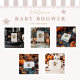This neutral Halloween baby shower design brings spooky charm with soft fall tones and whimsical woodland details. A cosy haunted cottage is surrounded by cute ghosts, pumpkins, and bats — perfect for a gender-neutral, cottagecore-inspired fall baby celebration.