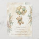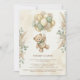 Neutral Teddy Bear Baby Shower flower Green Invitation