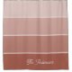 This trendy shower curtain features four stripes in varying ombre gradients of terracotta, tan, and neutral beige and your name or monogram in script typography for a boho and modern look.