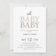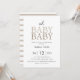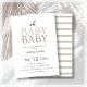 Charming and chic twin baby shower invitation showcases sophisticated neutral beige lettering that reads "Oh Baby Baby" against a pristine white backdrop. The reverse side features a delightful pastel beige and white stripe pattern. This invitation is designed for effortless personalisation, making it the ideal choice for commemorating the impending arrival of twin babies in a tasteful and stylish manner.