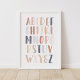 Introduce your kiddo to their ABC's with this hand-lettered watercolor poster. Decorate a wall in your little one's nursery, bedroom, or playroom with this educational print to encourage learning everyday.