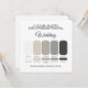 Each colour swatch includes clear hex colour codes, making it easy to coordinate wedding invitations, table settings, linens, signage, and stationery. Ideal for modern weddings, minimalist venues, chic city celebrations, or contemporary ceremonies.