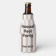 This bottle cooler has a geometric design of rectangles with diagonal ends in neutral tones of tan and pink, repeating throughout the design. If you like the design but prefer different colours, message me.
