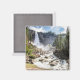 This photo features late winter at Nevada Falls is in full flow and the water thunders off the cliff face and takes up again in the merced river as it passes rocks and fir trees.