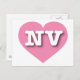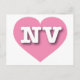 This postcard features a pink heart containing the bold, white, upper case letters NV, the official abbreviation for Nevada, the silver state. The reverse side of the postcard is blank, awaiting your customised text or handwritten sentiments.