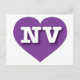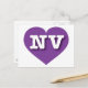 This postcard features a vibrant purple heart containing the bold, white, upper case letters NV, the official abbreviation for Nevada, the silver state. The reverse side of the postcard is blank, awaiting your customised text or handwritten sentiments.