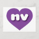 This postcard features a shapely and vibrant purple heart containing the bold, white, rounded lower case letters nv, a playful abbreviation for Nevada, the silver state. The reverse side of the postcard is blank, awaiting your handwritten sentiments or customised text.
