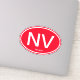 Nevada state code abbreviation NV vinyl car Sticker. Custom decal sticker for auto, car, caravan, trailer, RV, suitcase, laptop and other items. Add your own text or monogram letters. Classic European style white oval shape design. Cool automotive gift ideas for him or her. Add your own international country, state or city codes. National flags and symbols optional. Modern typography template. Red or custom colour. Small and big sizes. Other Amecian places;