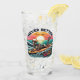 A bold and playful drinking glass featuring a skeleton riding a surfboard on a crashing ocean wave, set against a vibrant sunset background with the phrase “Never Better.” This ironic and carefree artwork blends surf culture with dark humour—perfect for beach lovers, alternative style fans, and those who embrace life with a rebellious, lighthearted edge.