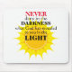 The inspirational and motivational phrase "Never deny in the darkness what God has revealed to you in the light" in bold lettering superimposed over an image of the sun.