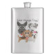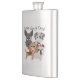 The product is a good size and came exactly as it was pictured. The lid is not attached to the flask, which could be dangerous on drunken nights... The print came out surprisingly well and looks very sharp. Would definitely recommend.
