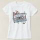 A cute retro-style illustration of a cassette tape labeled “Never Forget,” decorated with a pink bow and surrounded by music notes, records, and headphones.