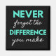 Never Forget The Difference You Make design. This is a short motivational quote which is great as an employee appreciation gift. Also suitable as a coworker office gift.