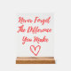 Never Forget The Difference You Make, Thankful Acrylic Sign