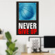 Never Give Up Blue Basketball Motivational Poster