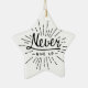 A quality product. Very nicely printed which wraps around the edge with a plain back. Not at all to heavy to fall off that tree branch. The printing seems crisp and robust enough to last for many a Christmas.