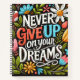 never give up on your dreams notebook
