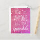 This lovely postcardfeatures a pink bokeh design and the motivational phrase "Never let anyone dull your sparkle." Perfect to send to a friend or a loved one, or for yourself.