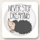 Cute postcard with cartoon flat hand drawn hedgehog and inspirational and motivational quote Never Stop Dreaming in a circle light blue frame on a white background. | Bigstock® - All Rights Reserved.