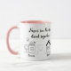 This trendy mug features Two cute Hand draw house of you and your Best Friend! The words "Never Too Far To Drink Together" appear in Black script, and This Coffee Mug Features a Customisable name of you and your best friend on a white background. simple elegant best friends mugs.
