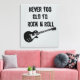 Rock music is timeless whether you're young or old. This high quality poster features a classic guitar with worn out text. The message is simple; never let your age restrain you from the love of rock music.