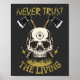 never trust the living scary skull design with crossed axes. this gothic design is for those who love horror movies.