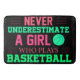Girls Basketball design says: Never Underestimate A Girl Who Plays Basketball
