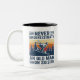 never underestimate an old man on skis Two-Tone coffee mug