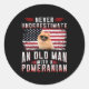 Never underestimate an old man with a Pomeranian Classic Round Sticker