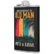 Funny kayak design on T-shirts and more, great for anyone who loves kayaking, features a kayaker on a rolling river and text that reads Never Underestimate an Old Man With a Kayak!