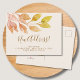This botanical fall moving announcement postcard features minimalist watercolor foliage in shades of rust. and reads "New Address" in stylish script typography.