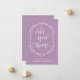 This purple "new home" announcement card features a rustic floral wreath and the phrase "Our new home" written in lovely calligraphy.