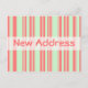 New Address Retro inspired orange and green stripes. Customise with your own words. Cute simple colourful striped design. Customise and Personalise the text on this product for any occasion or special event. Postcards are perfect for mass mailings. Postcards are an inexpensive choice whenever you need to mail a large number of announcements or party invitations. Discounts available when purchased in bulk.