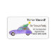 New Address Purple Car with Christmas Gifts, hand drawn watercolor