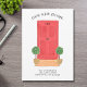 It is decorated with a watercolor of a red door, pots of topiary, and Our New Home in stylish typography.
