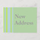 New Address Soft summer colours of yellow grey and blue stripes. Pretty and simple design. Customise by adding your own words. Personalise with your own name. Customise and Personalise the text on this product for any occasion or special event. Postcards are perfect for mass mailings. Postcards are an inexpensive choice whenever you need to mail a large number of announcements or party invitations. Discounts available when purchased in bulk.